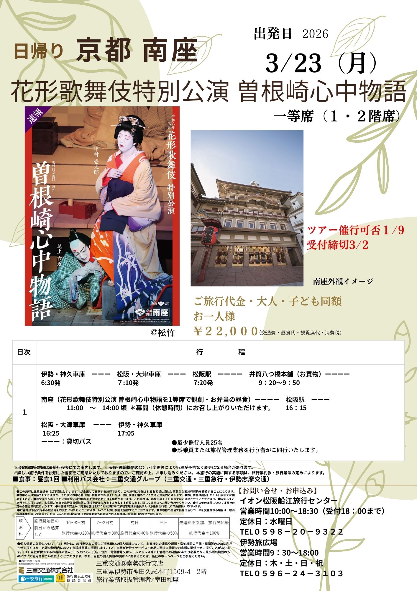 三交旅行総合トップ > 支店限定企画 > 【日帰り】京都 南座 花形歌舞伎特別公演 曽根崎心中物語